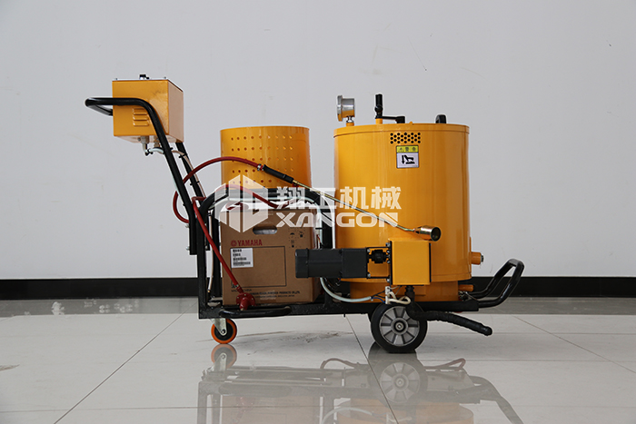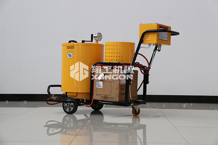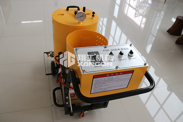 翔工60L手扶瀝青灌縫機采用液化氣加熱系統,導熱油循環,使瀝青或灌縫膠快速融化,通過瀝青泵的壓力由出料口出料而達到裂縫處理的效果。通過壓力注射式灌縫,使材料和縫壁緊密結合,轉向靈活的萬向輪追蹤裂縫,使灌縫效果美觀。由于灌縫材料使用瀝青或灌縫膠,在溫度較低時容易凝固,灌縫機配有發電機組提供整機動力,灌縫機在出料管部位采用恒溫控制系統,避免材料燒焦老化,保證出料的順暢。
