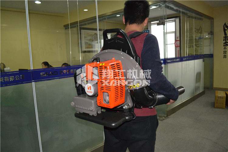 背負式馬路吹風機以小型風冷二沖程汽油機為動力,帶動風葉高速旋轉,在導風罩殼引導下形成強力風束,通過加長風管和風嘴輸出。