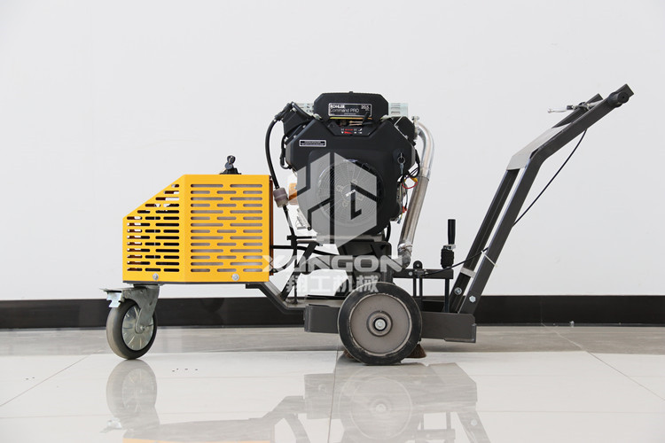 路面開槽機是由動力強勁的發動機作為動力源,通過三角帶帶動主軸高速旋轉,手搖升降手輪使主軸下降,切割裂縫,前行走輪采用萬向輪,使整機在工作中可以按照裂縫自然形成的曲線進行切槽,裝有匹配的風扇頁還可以用做開槽后對槽里灰塵的清理,實現一機多用的目的。