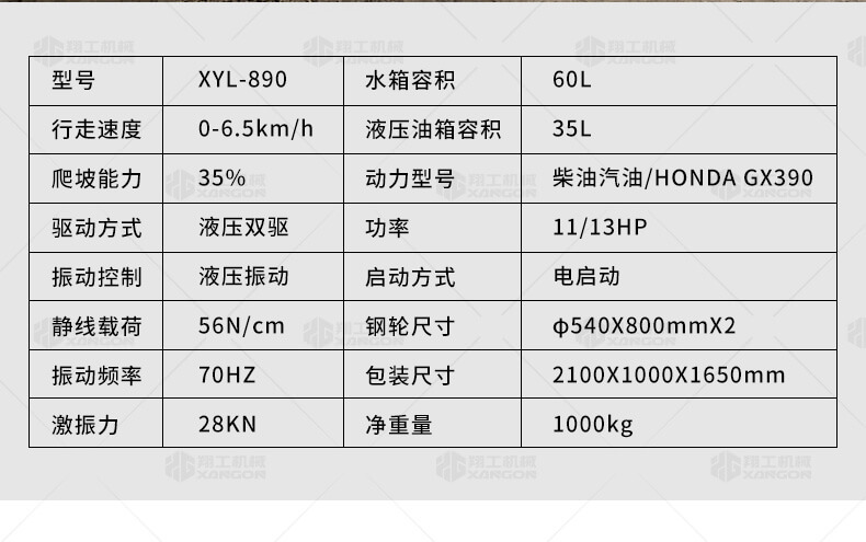 XYL-890壓路機采用風冷柴油發動機 進口變量柱塞泵 進口馬達,液壓振動 進口馬達雙驅動 液壓轉向 灑水控制開關 豪華座椅 LED燈