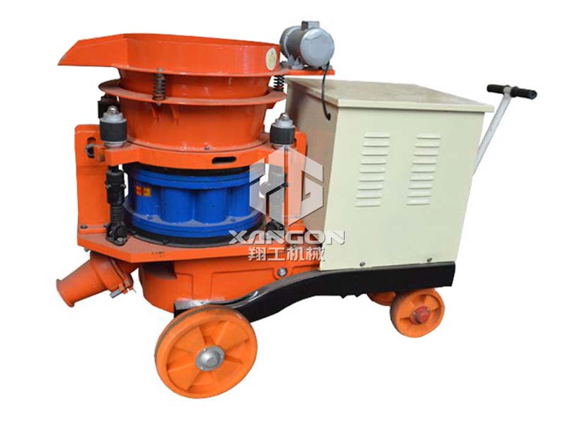 潮噴機是用于濕式噴射混凝土的設備,與干噴機相比,它具有作業粉塵小、噴射回彈少、保護工作環境