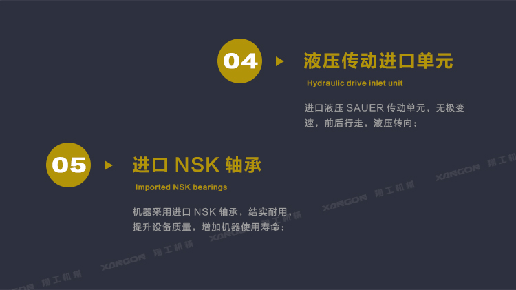 ·傳動機構采用名優液壓傳動系統,無級變速,換向方便,實用壽命長;