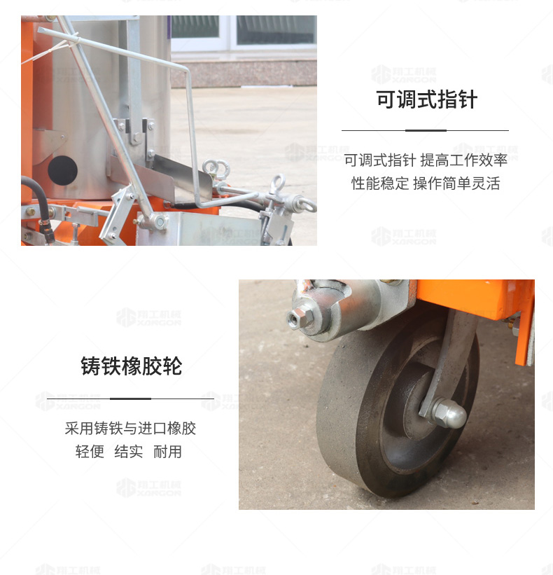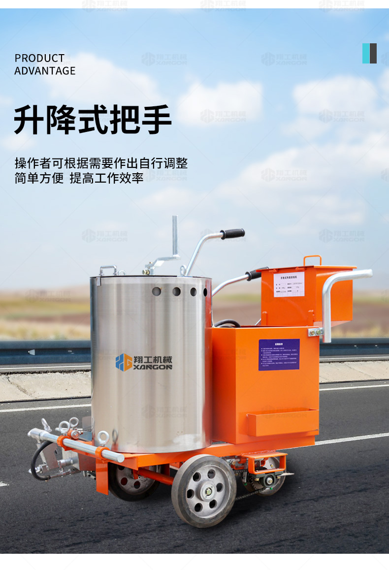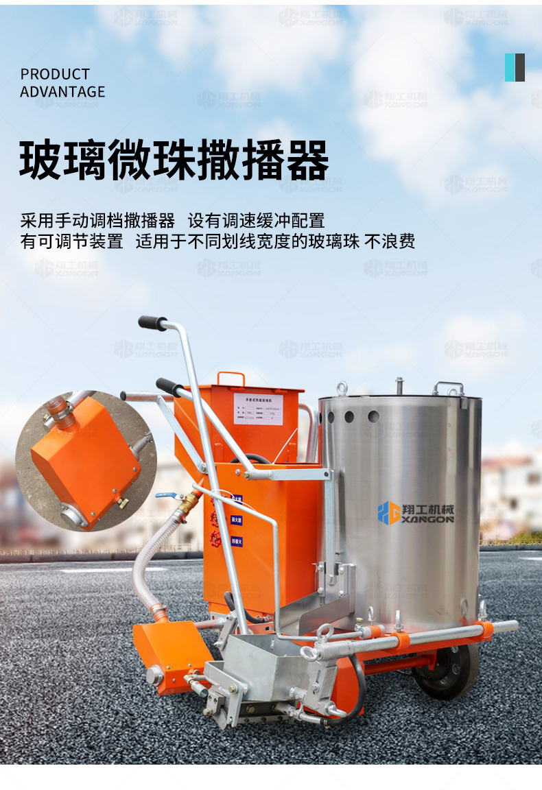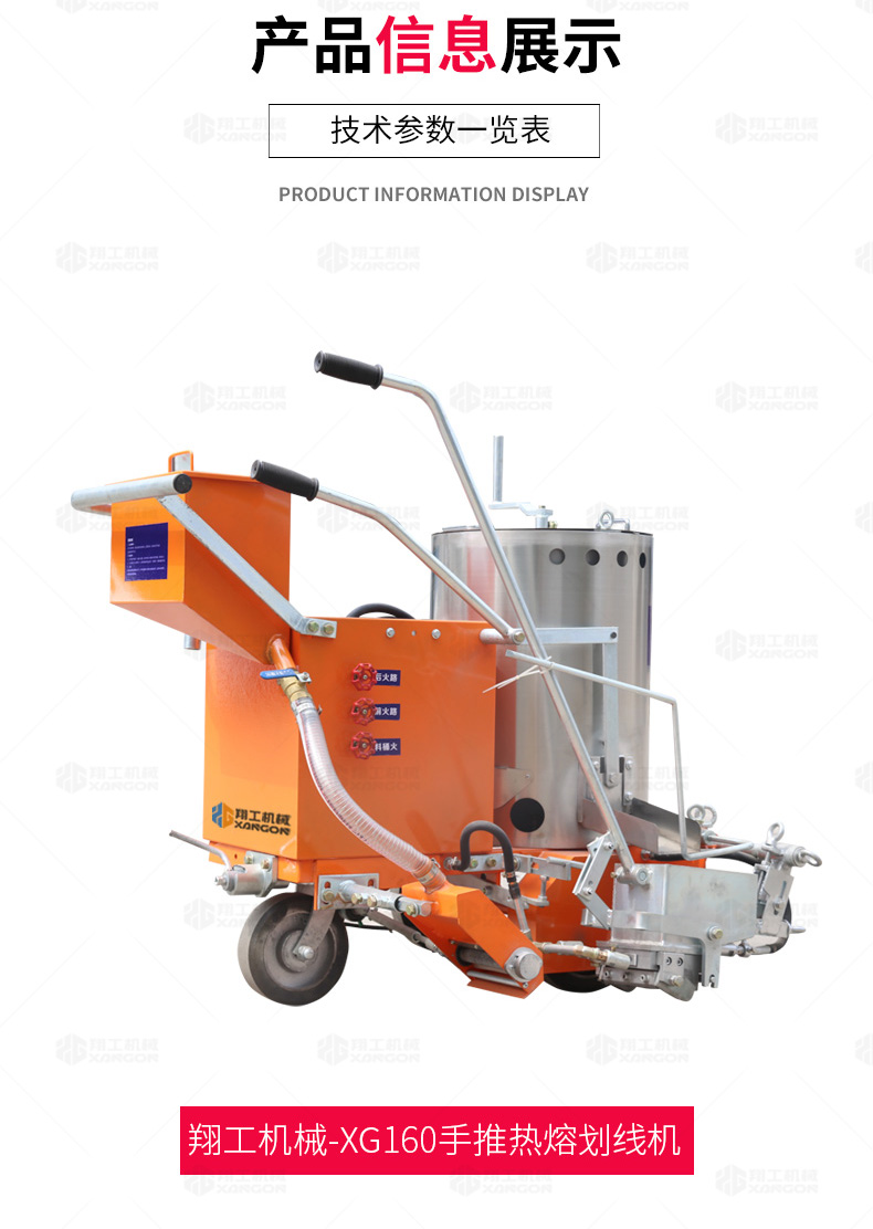 160手推熱熔劃線機采用普通鑄鐵劃線斗,同步離合玻璃微珠自動撒播器,具有結構簡單、輕便、價優、性能優良等特點。