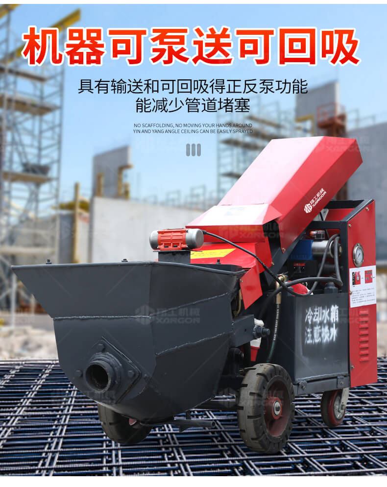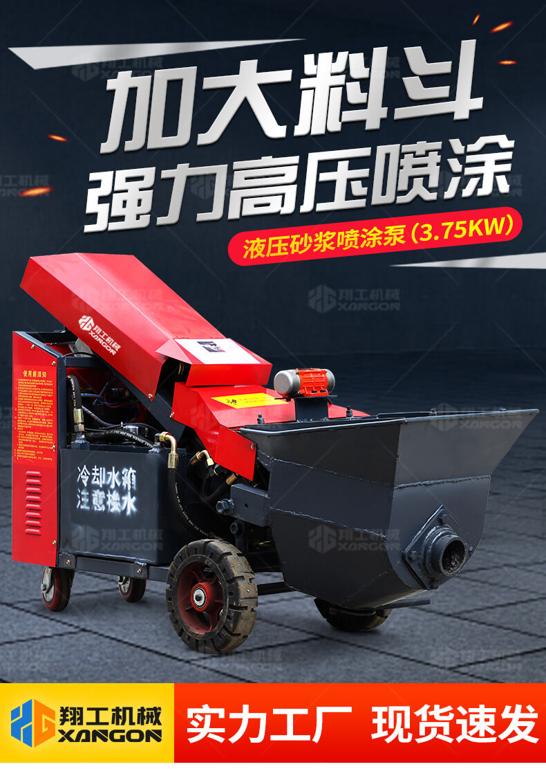 商品預拌砂漿,石膏砂漿,高標號自拌砂漿,高強無收縮灌漿料,自流本機器采用成熟液壓推進技術、泵車原理,革命性的采用斜體升降式布局,模塊化構件,且電機功率小,揚程高、體積小、重量輕等顯著優點,機器標配全軟管,方便移動易施工,改善了以往砂漿泵的體積笨重、磨損快、難維護的缺點。