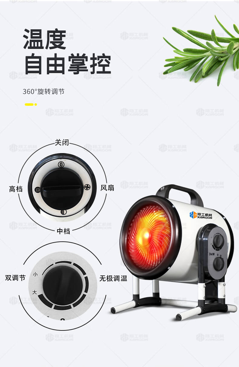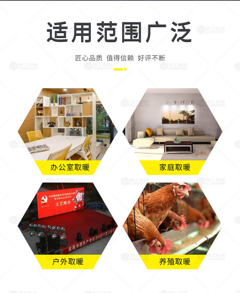 本產品是我公司廣泛吸取國內外多種暖風機產品的成功經驗,精心研制而成的,能使您的居室溫暖,舒適。便攜式空氣暖風機可根據適用場所不同進行劃分,適用于大型結構工程、建筑工地、道路維修、停車場,以及房屋完工工程、公寓和公共設施。它們啟動的及時性 和使用的隨時性是其優勢所在,而且還能省去安裝其他高費用設備的麻煩。
