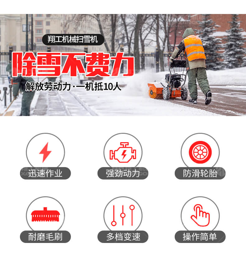 1、節省勞動力,一臺機器能完成至少20個人的工作量 2、節省管理成本,降低環衛工人的交通事故率 3、清掃人行道等路面非常干凈,不留殘雪