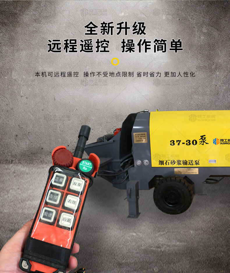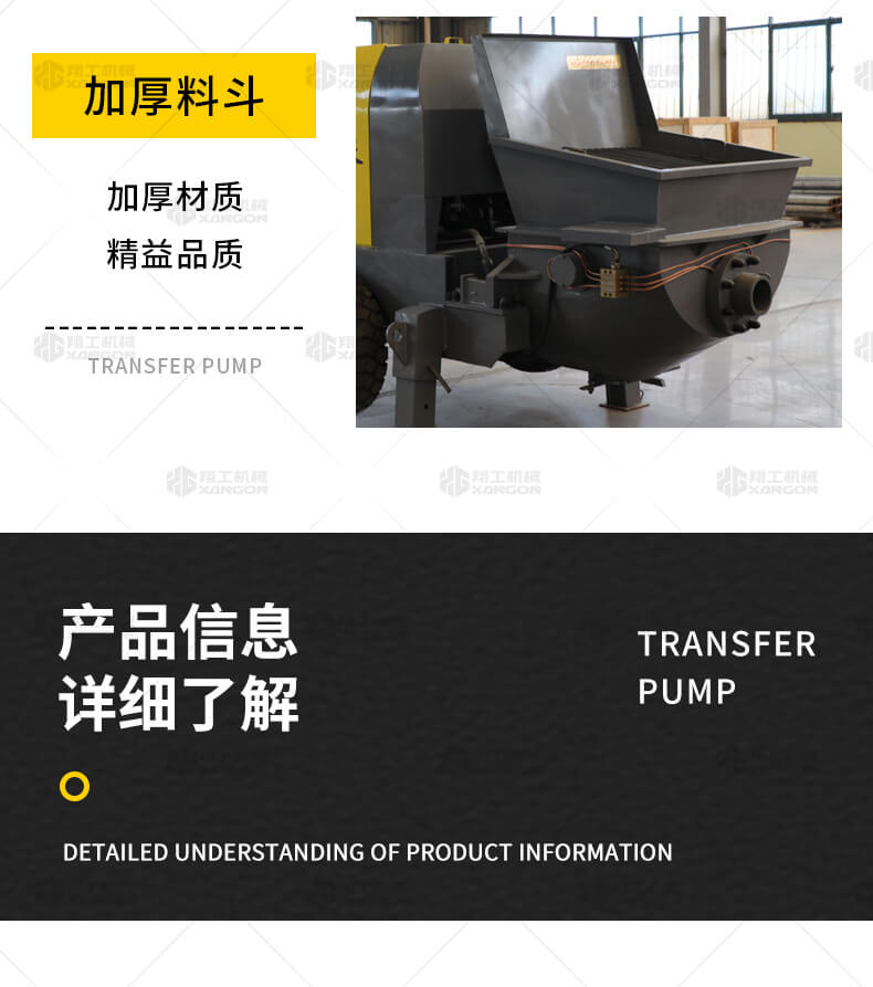 細石砂漿輸送泵是專業的砂漿輸送設備,可用于坡道灌漿,水平地面,隧道澆筑,模板灌漿。