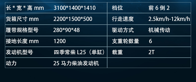 履帶運輸車是專門提供復雜路況運輸工作的機器,適用于普通運輸車輛無法或者不適合通行的地方。履帶運輸車以履帶代替了輪式行走,降低了對地面的損傷,同時履帶行走裝置降低了機器與地面的單位面積壓力,適用于山林、田地、沼澤、沙地、草地、雪地以及土質松軟或氣候條件不太發的接近角和離地角。