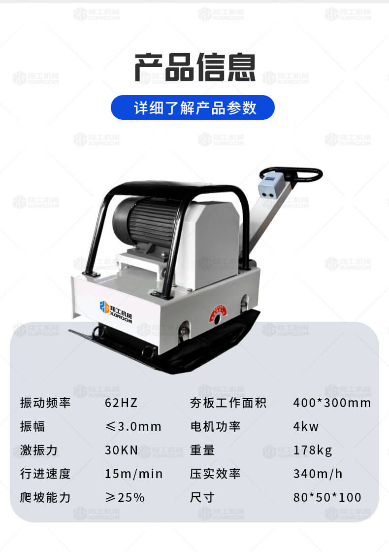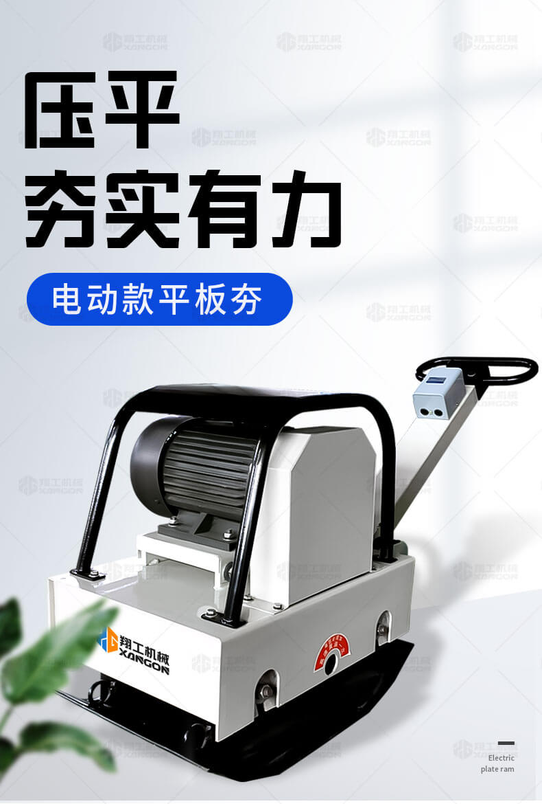 電動平板夯是一種理想的混凝土基礎面層及一般混凝土構件表面振實的工具,也是一種理想的夯實土壤、砂土、碎石的機械。