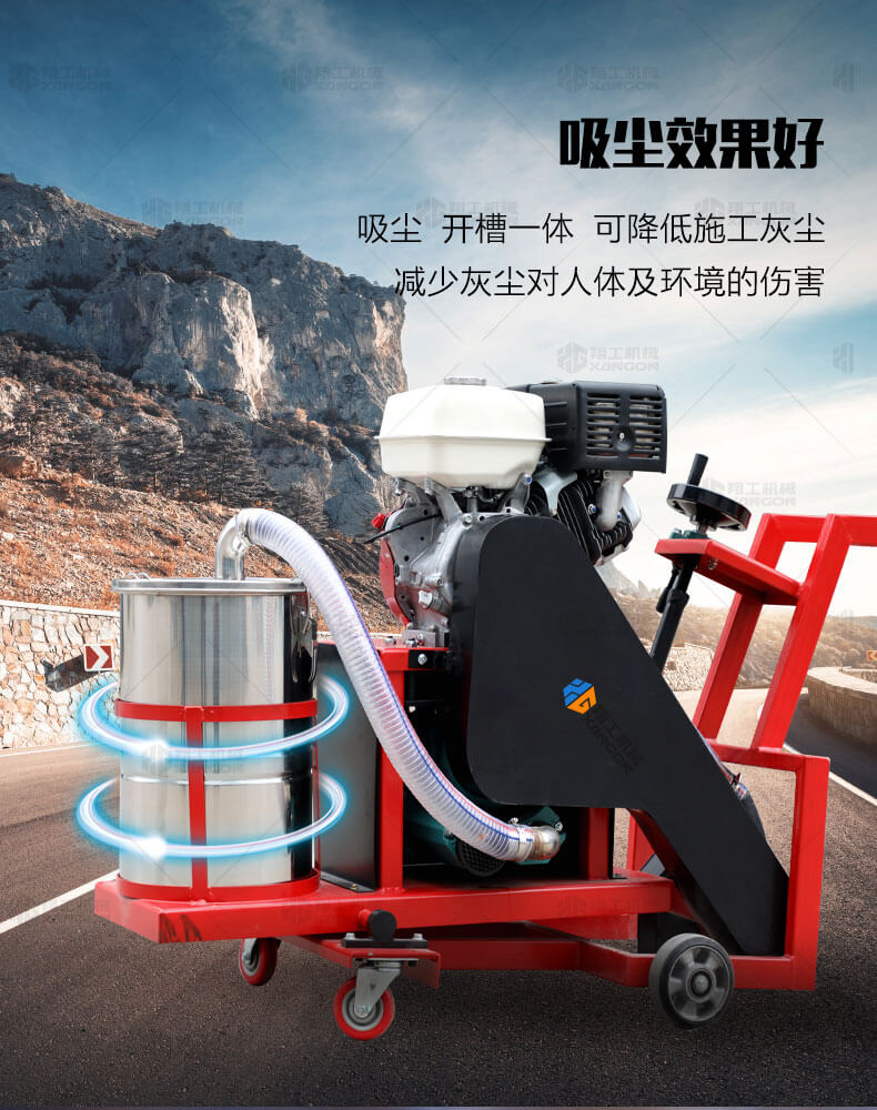 路面無塵開槽機是主要用于瀝青路面修補裂縫開槽的機械,其集吸塵、開槽為一體,環保性好,工作效果高,是路面開槽施工不錯的選擇。