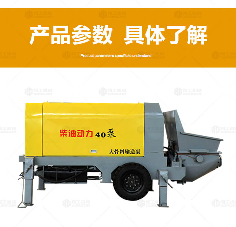 大骨料混凝土輸送泵主要用于坡道灌漿、水平地面、隧道澆筑。模板灌漿等。移動便捷全部采用快接式管道卡,提高工作效率 。
