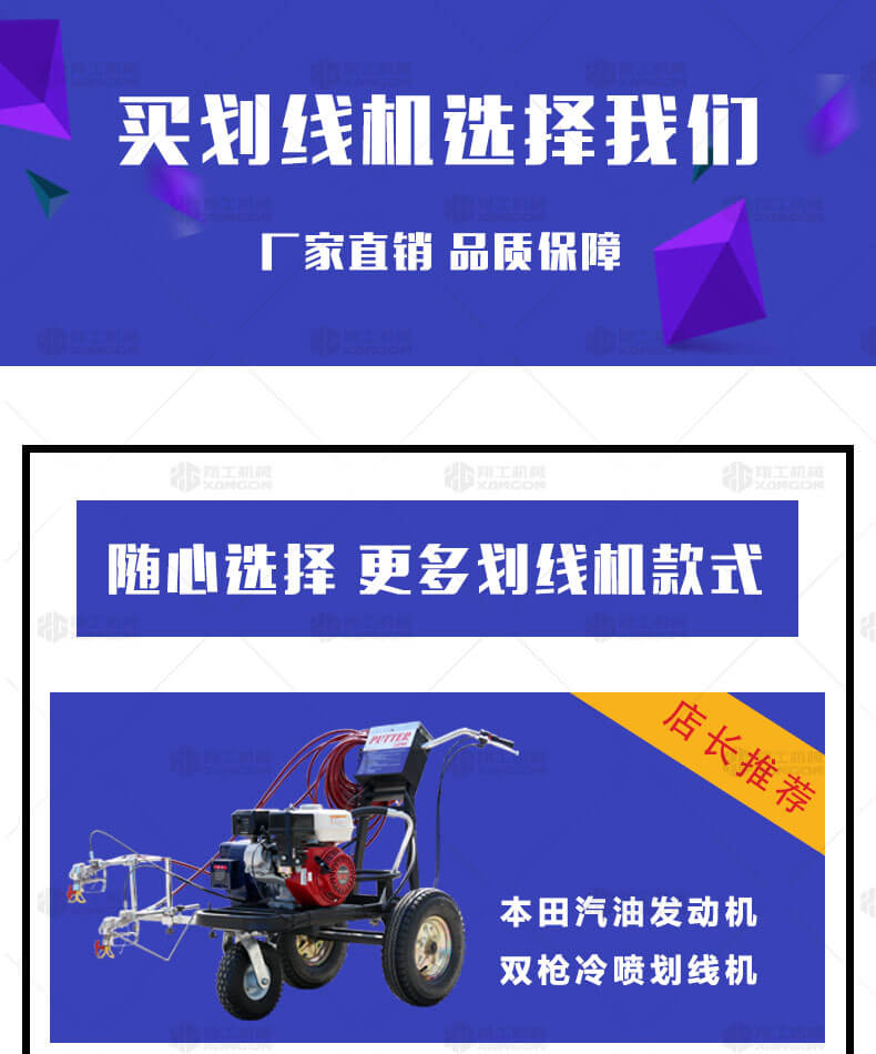 冷噴劃線機是常溫標線施工的專用設備,噴出的線型清晰、流暢、飽滿、均勻,主要用于公路、停車場、機 ...