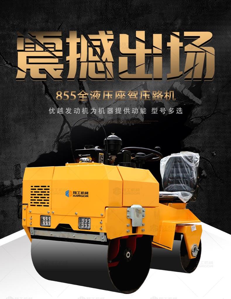 855座駕壓路機主要用于溝渠基礎,道路,體育場地的壓實整平,也可用于壓實瀝青表面的作業。