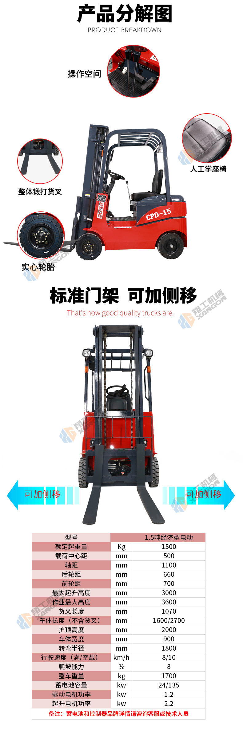 1.5噸經(jīng)濟(jì)型電動(dòng)前移式電瓶座駕式液壓電動(dòng)叉車