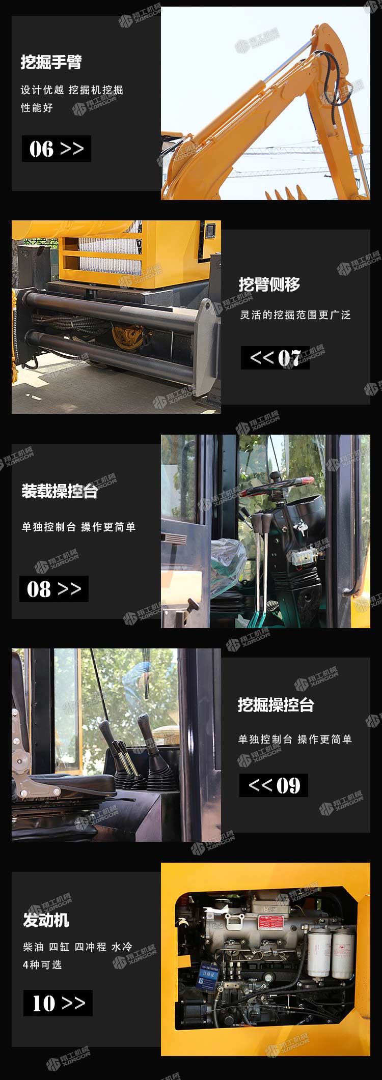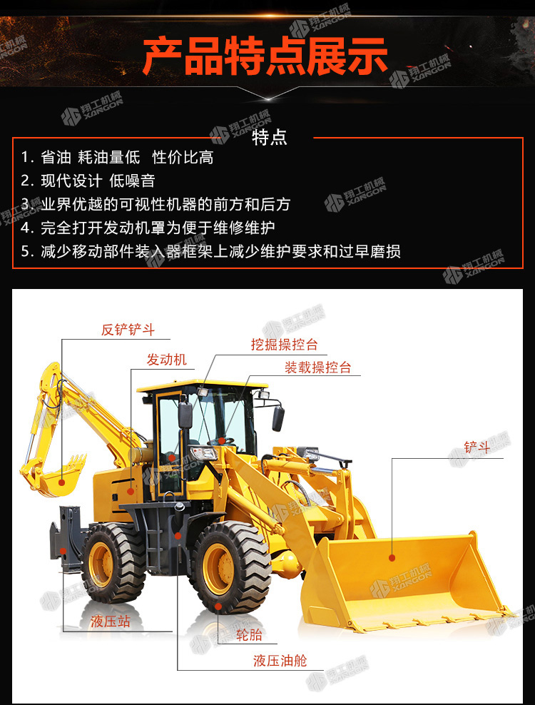 【產品簡介】 挖掘裝載一體機俗稱“兩頭忙”。因為它具有獨特的構造,前端是裝載裝置,后端為挖掘裝置。在工地內,您只需要轉動一下座椅,即可完成從裝載機到挖掘機操作手角色的轉變。“兩頭忙”屬于小型多功能工程機械的一種,一般在大工程完成后的小工程中使用。它可配多種工作裝置及輔具,進行挖掘、鏟裝、路面破碎、平整場地、開挖溝渠、鋪設管道等多種作業。