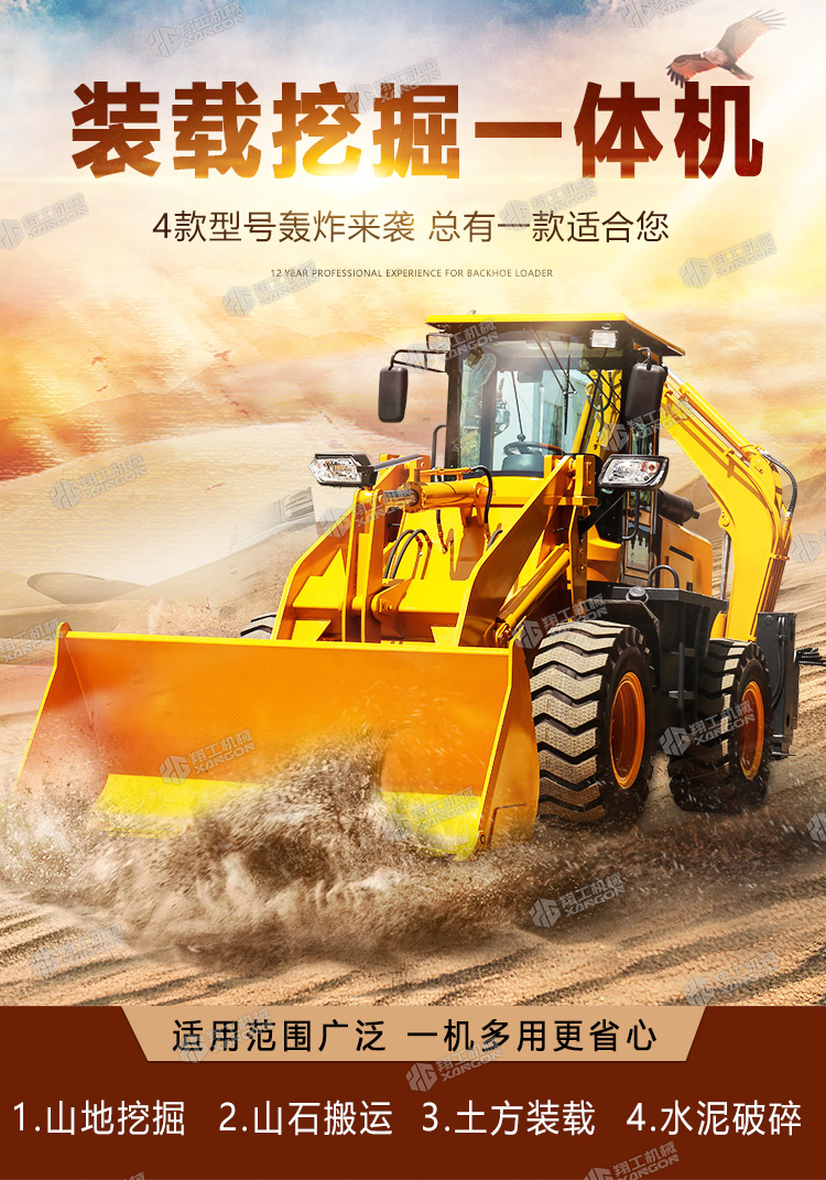 挖掘裝載機主要用于城市和農村的公路建設及養護、電纜鋪設、電力和機場工程、市政建設、農田水利建設、農村住宅建設、開山取石以及各種小型建筑隊所從事的各種建筑施工工程。