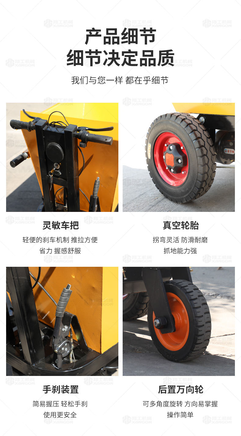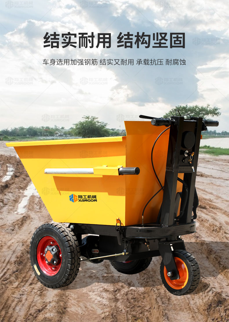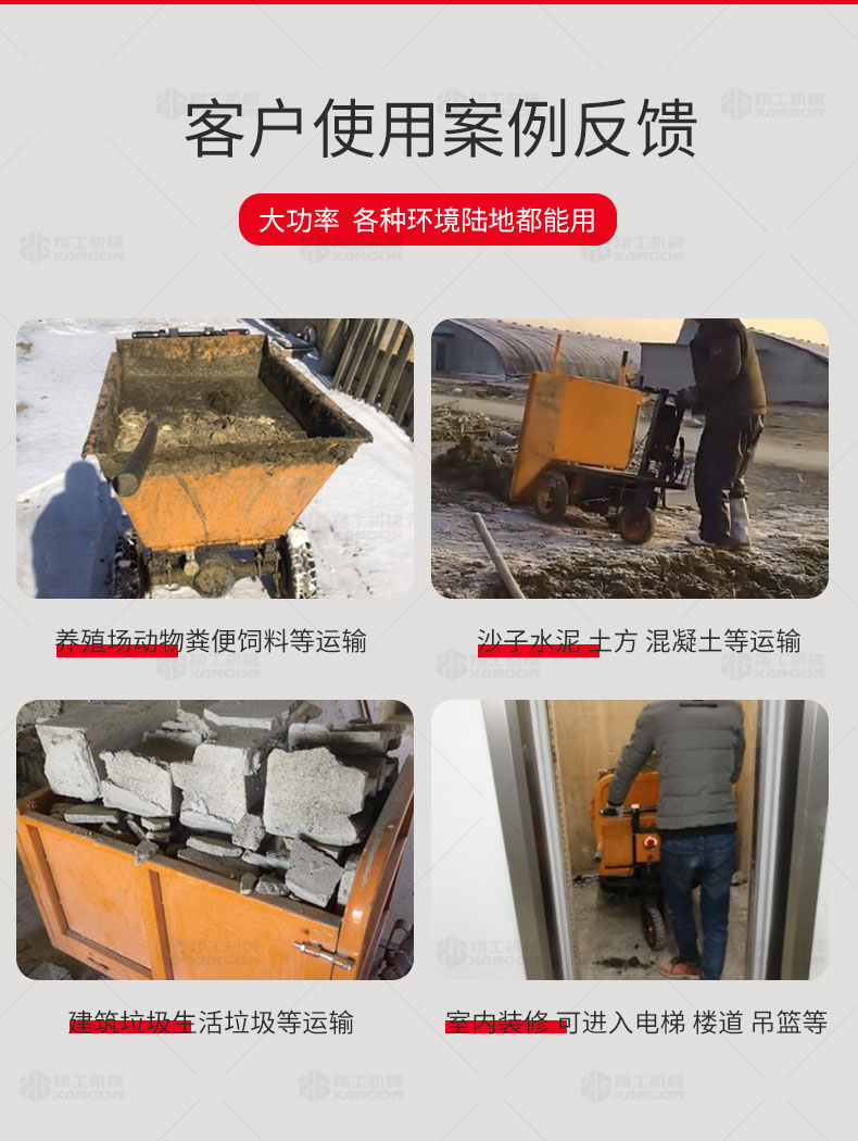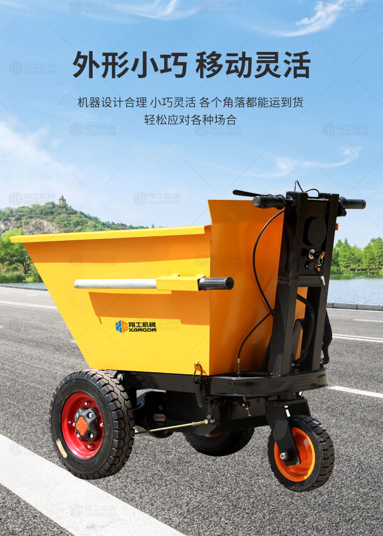 此款車適用于建筑工地、室內裝修、養殖場、工廠等場所,運輸沙子、水泥、土方、混凝土、建筑垃圾生活垃圾、養殖場動物糞便、飼料等,體積小操作簡單靈活,可原地360度轉圈,可進入樓層、樓道、電梯、吊籃等各種狹小空間作業,是您必不可少的裝卸助手。