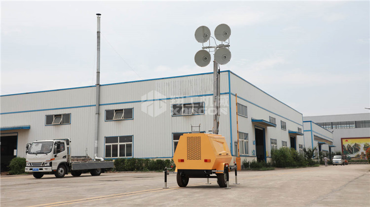 采用品牌高性能發(fā)電機組供電,發(fā)電機組一次注滿汽油可連續(xù)工作時間9小時;在有市電的場所,也可接通220V交流電源實現(xiàn)長時間照明。