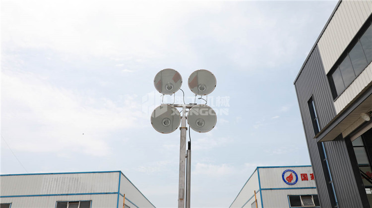 燈塔升降桿采用強度較高的合金材料精制而成,能根據(jù)要求實現(xiàn)自動升降調(diào)節(jié),升起高度為6米;四個燈頭可單獨上下左右調(diào)節(jié)照射角度,使燈光覆蓋工作現(xiàn)場。