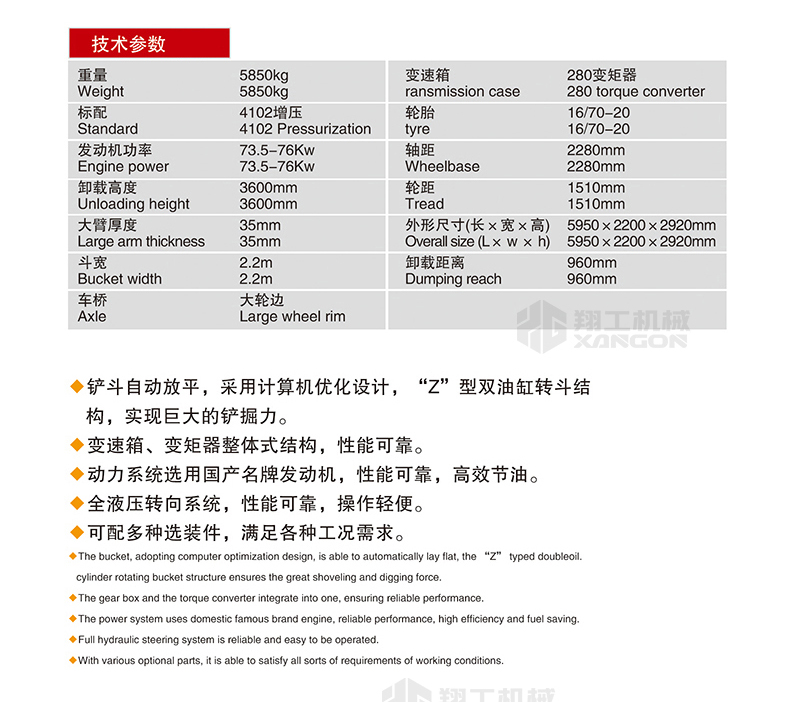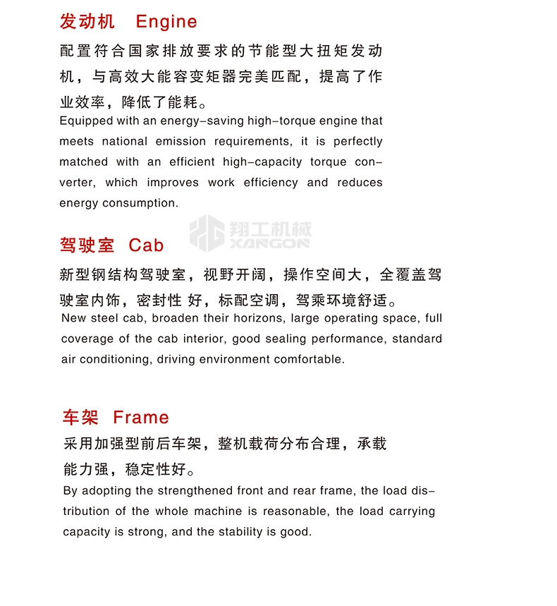 主要用于鏟裝土壤、砂石、石灰、煤炭等散狀物料,也可對礦石、硬土等作輕度鏟挖作業(yè)。換裝不同的輔助工作裝置還可進行推土、起重和其他物料如木材的裝卸作業(yè)。在道路、特別是在高等級公路施工中,裝載機用于路基工程的填挖、瀝青混合料和水泥混凝土料場的集料與裝料等作業(yè)。