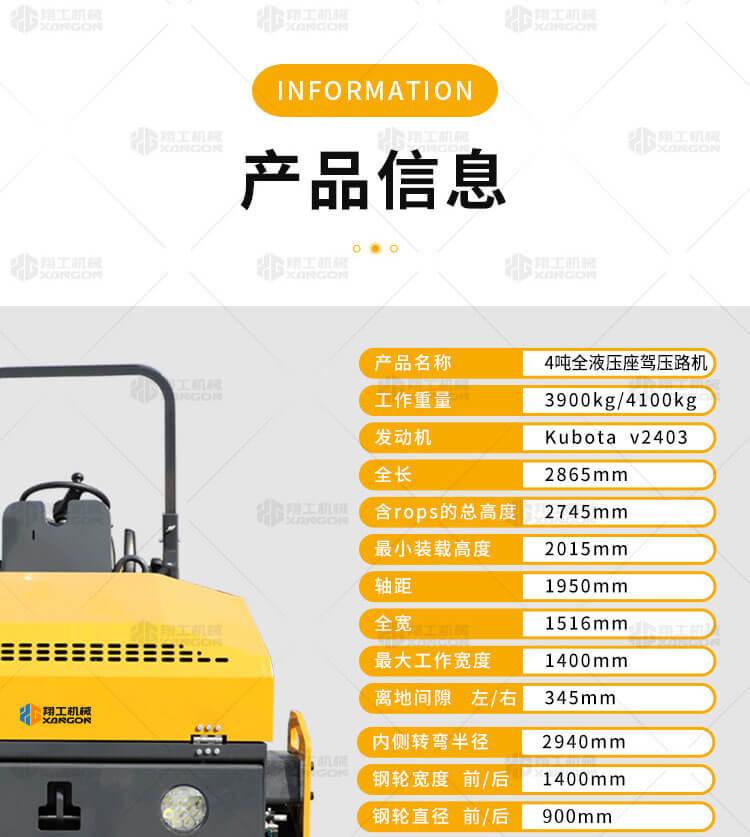 XYL-1400 4噸雙鋼輪全液壓座駕壓路機