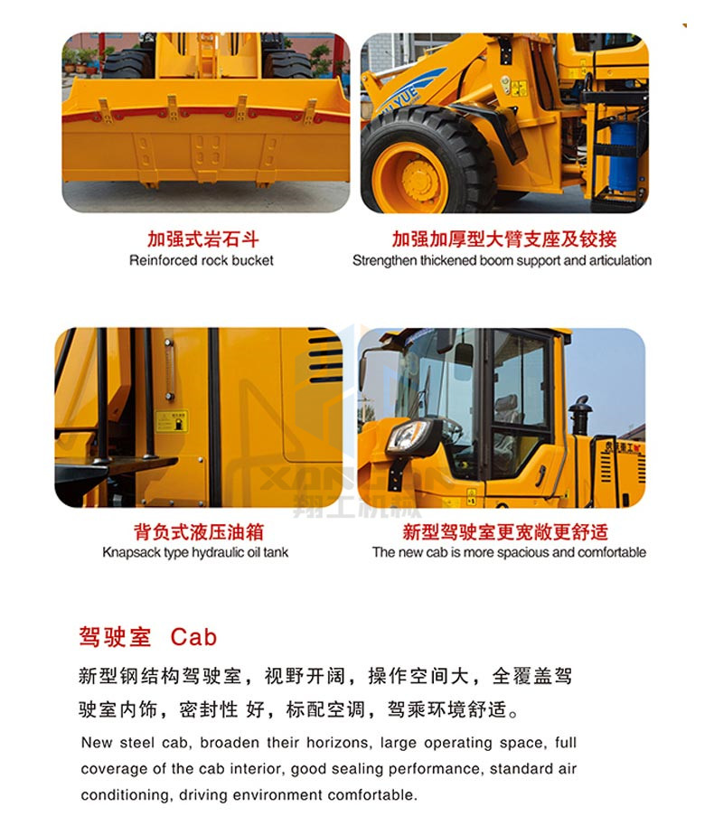 主要用于鏟裝土壤、砂石、石灰、煤炭等散狀物料,也可對礦石、硬土等作輕度鏟挖作業。換裝不同的輔助工作裝置還可進行推土、起重和其他物料如木材的裝卸作業。在道路、特別是在高等級公路施工中,裝載機用于路基工程的填挖、瀝青混合料和水泥混凝土料場的集料與裝料等作業。