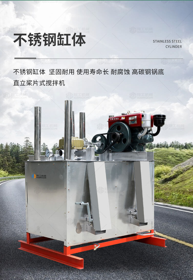 熱熔釜是一款熱熔標線施工的主要設備之一。標線施工時,先利用熱熔釜將粉末狀涂料加熱,攪拌,直到熱熔變成液態后,再將涂料放入劃線機內進行劃線施工。