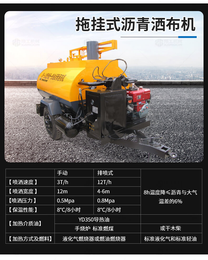 熱管—熱油式瀝青灑布(灌縫)機是一種新型的筑、養路機械設備,該產品具有結構緊湊、加溫速度快、操作簡單、勿需柴油清洗管道等優點,該產品價位低、無污染,是現代公路工程施工及養護的理想產品。