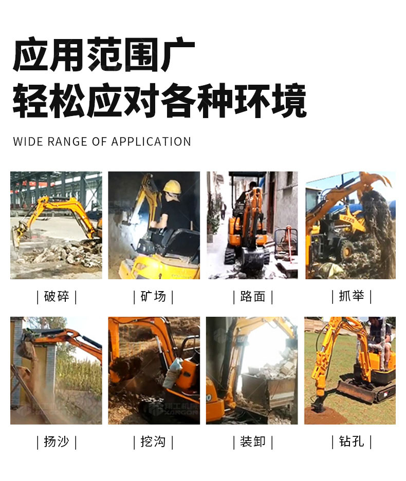 小型挖掘機主要適用于農業蔬菜大棚的土地疏松,市政部門的園林綠化、果園苗圃栽樹挖坑、混凝土路面破碎,砂石料攪拌等空間狹小的施工作業等;小型挖掘機價格低、質量輕、保養維修方便,具有獨特優勢。