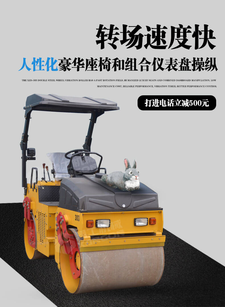 1,XZD-303雙鋼輪振動壓路機轉(zhuǎn)場速度快,人性化豪華座椅和組合儀表盤操縱。維修成本低,性能可靠,配置震動計時器,對工作績效更好地控制;