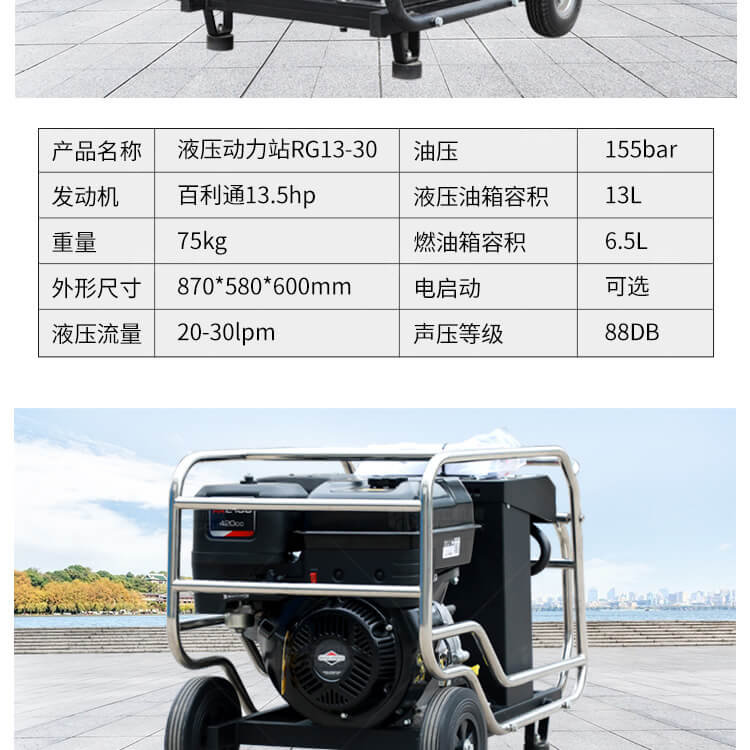 液壓動(dòng)力站可連接多種液壓工具,液壓渣漿泵,液壓破碎鎬等其他液壓設(shè)備。
