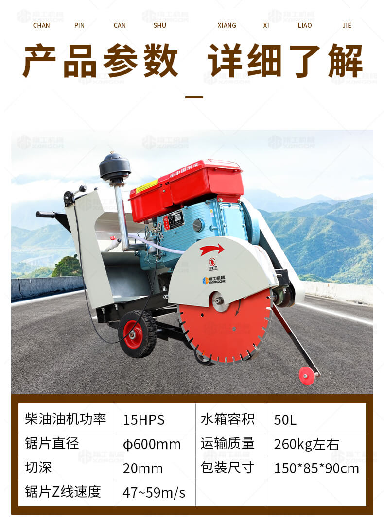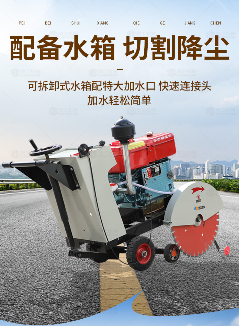 HQ600型水冷柴油馬路切割機(jī)也稱之為混凝土路面切縫機(jī),廣泛用于市政、建筑、建材、公路、橋梁、自來水、熱力管線、機(jī)場建設(shè)等諸多行業(yè)的瀝青