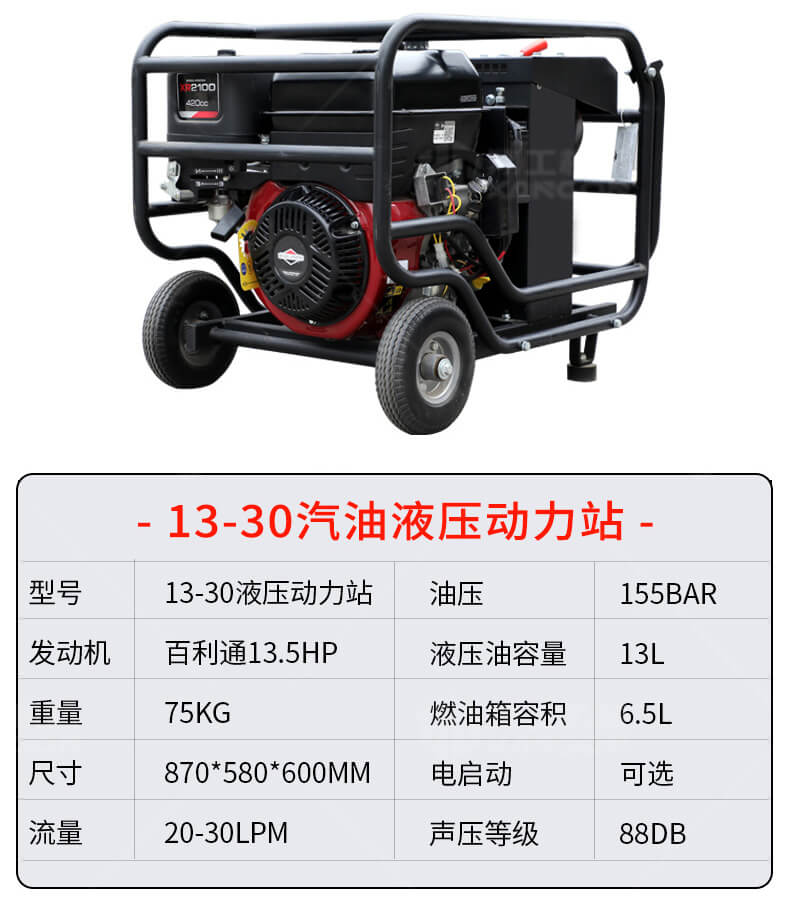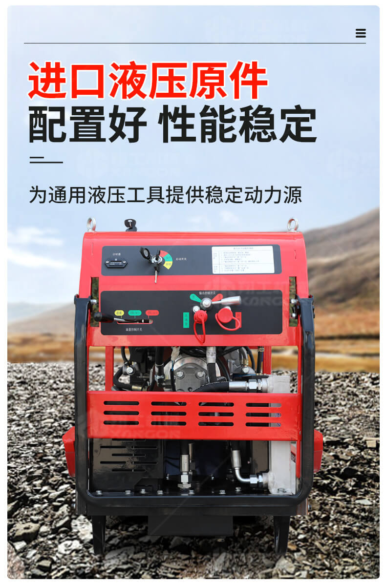 液壓動力站采用先進的技術,可提供汽油或柴油風冷式內燃發動機,燃燒效率高,重量輕,堅固耐用,使用壽命長,且不用擔心發動機過載。