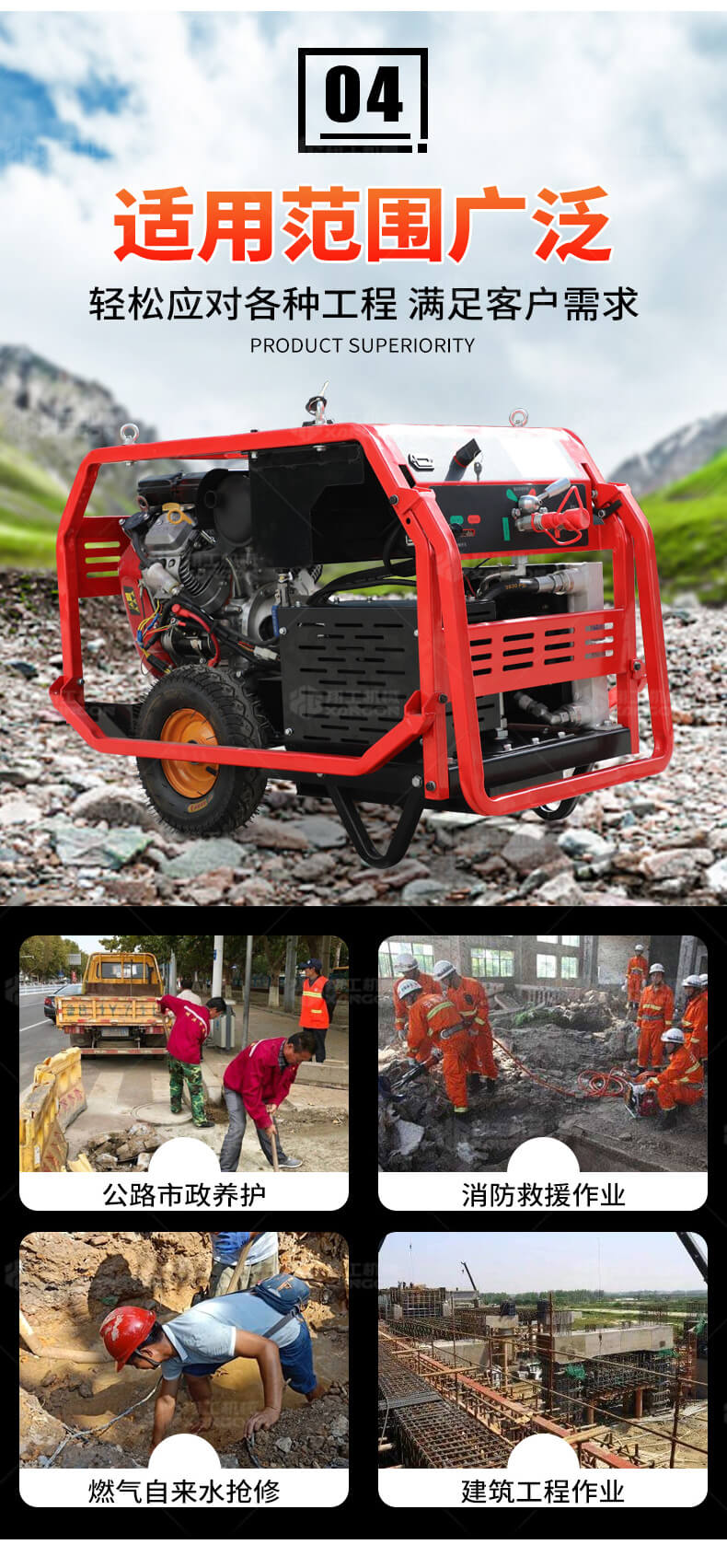 液壓動力站采用先進的技術,可提供汽油或柴油風冷式內燃發動機,燃燒效率高,重量輕,堅固耐用,使用壽命長,且不用擔心發動機過載。