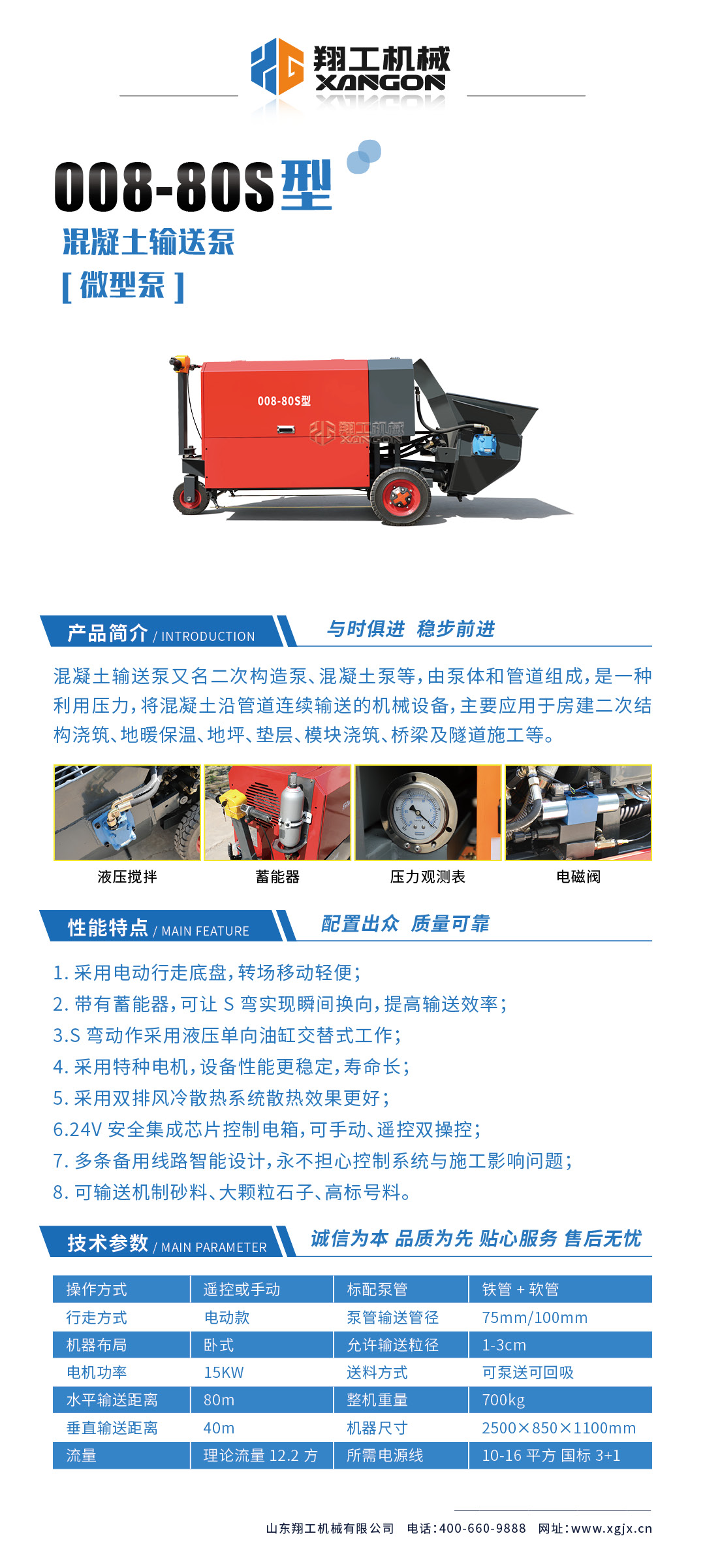 采用電動行走底盤移動更輕便,采用雙排風冷散熱系統散熱效果更好,液壓系統采用國內知名廠商葉片泵,故障率低,壽命更長,性能更穩定,輸送距離更遠揚程更高,打料速度更快。