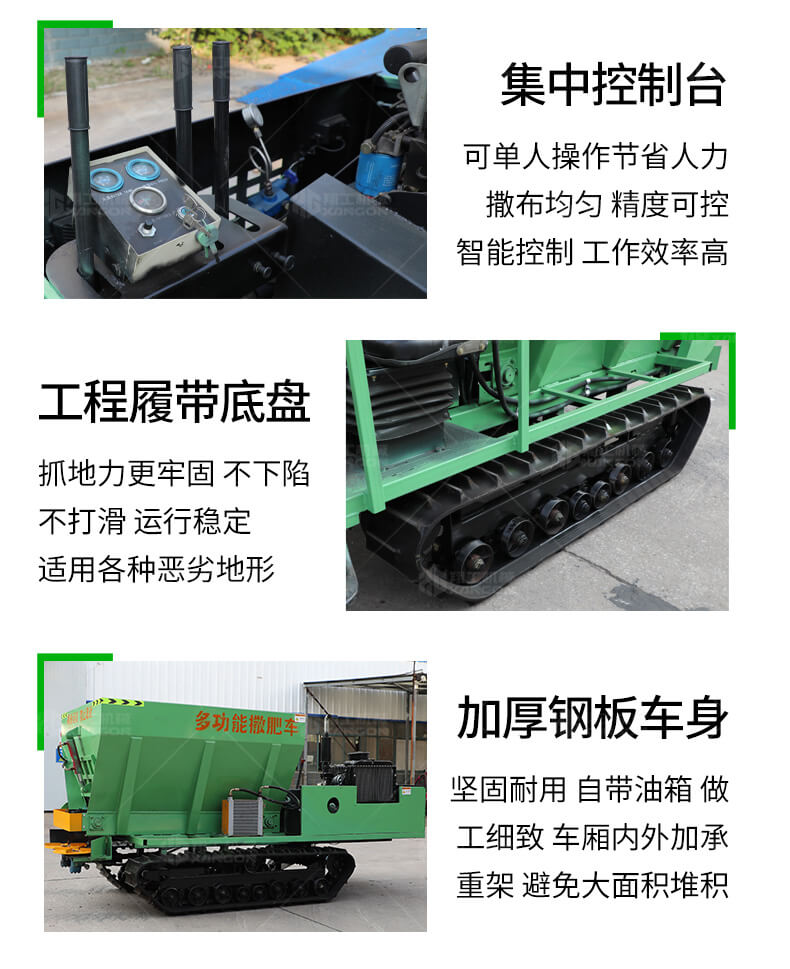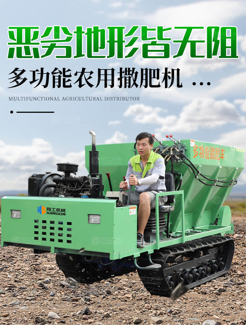 履帶式撒糞車是一款根據果園、大棚丘陵地帶量身定制的一款撒糞車,轉彎半徑小既可揚撒各類農家肥,也可直接鋪肥。