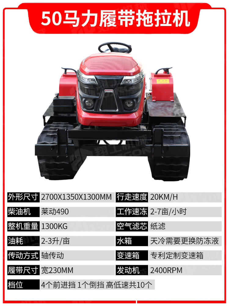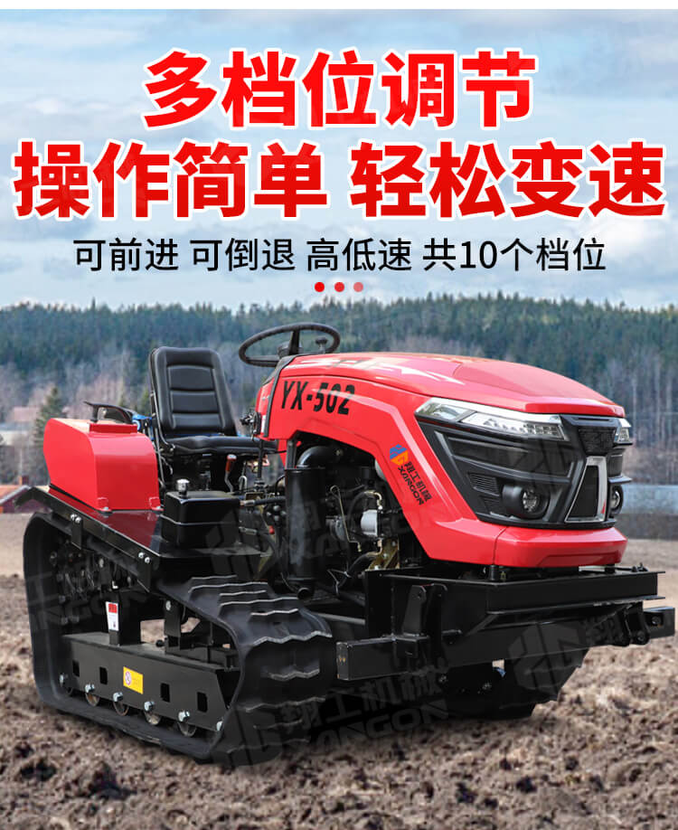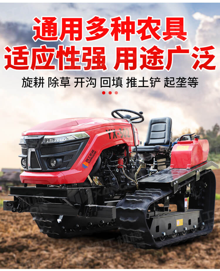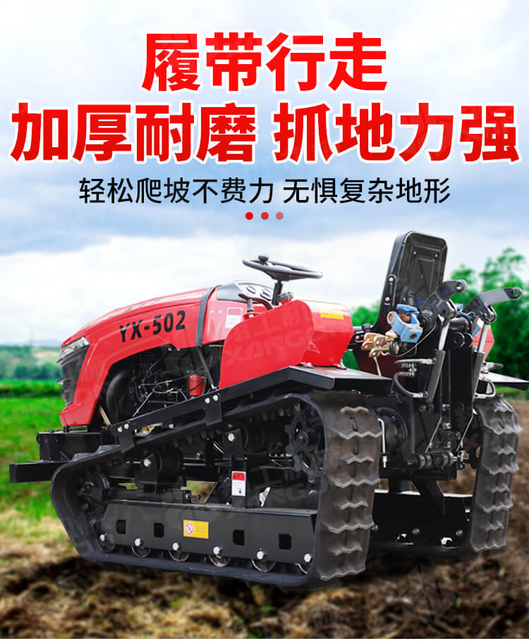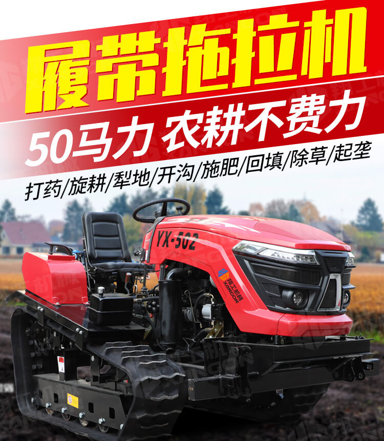 履帶拖拉機本機能完成耕、耙作業,具有碎土能力強、耕后地表平坦等特點。采用寬耕幅、對稱懸掛使輪跡全部覆蓋,有省時、省力、作業質量高成本低等特點。