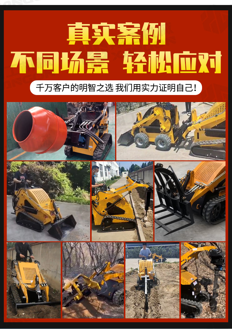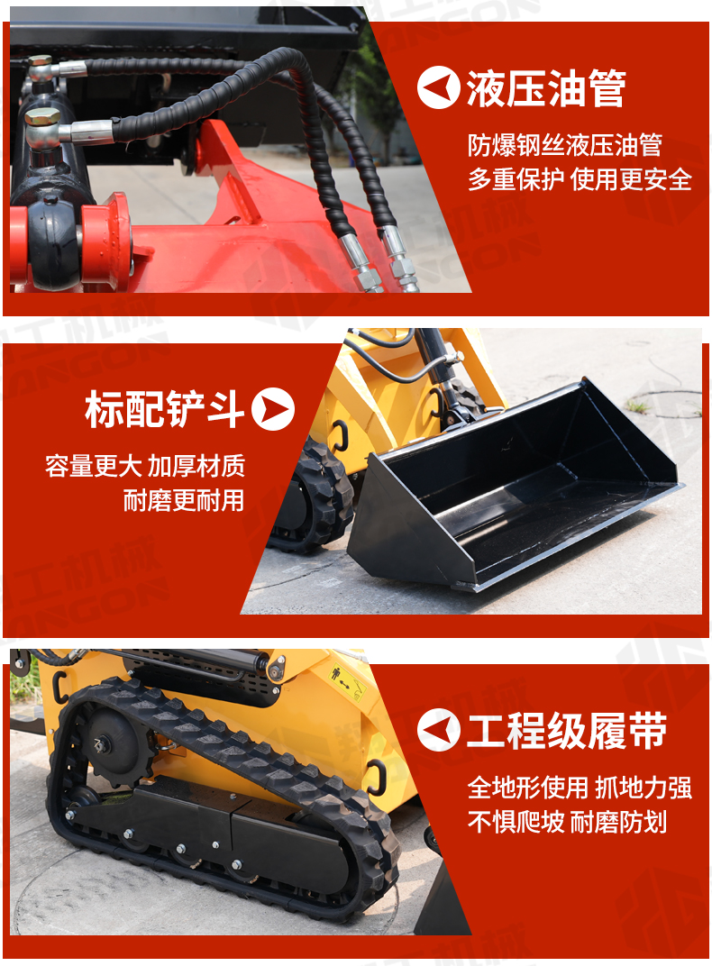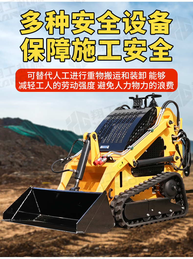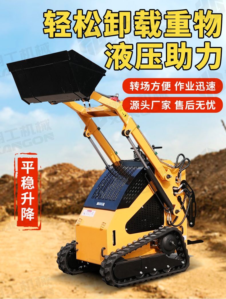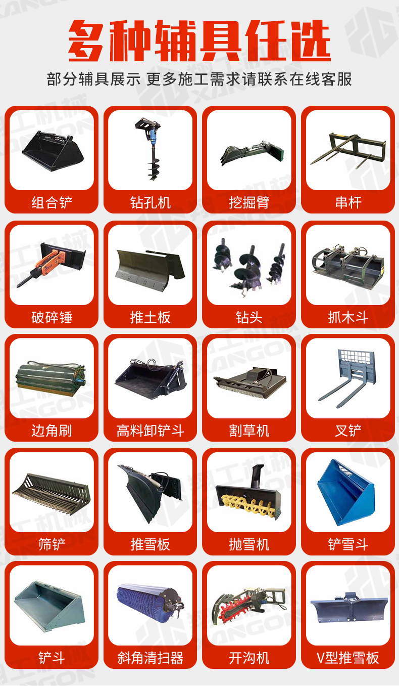 滑移裝載機(jī)液壓舉升,可以任意搭配輔具。