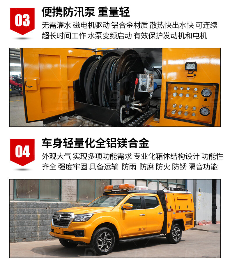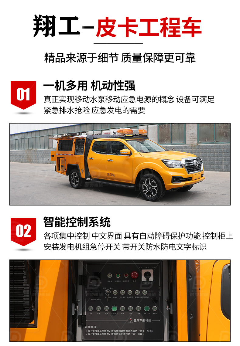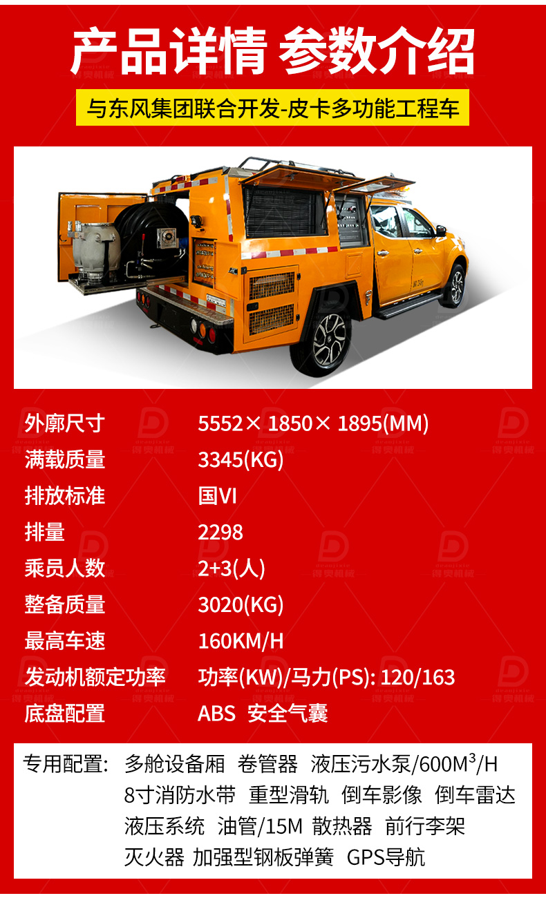 這是一款集皮卡越野能力與專業工程設備于一體的多功能特種車輛。它動力強勁,通過性極佳,能輕松應對復雜路況。后斗集成液壓系統,可搭載液壓污水泵、液壓打樁機、電焊機等多種專業工具,是電力搶險、市政維修、工程作業等領域的移動工作站和得力助手。