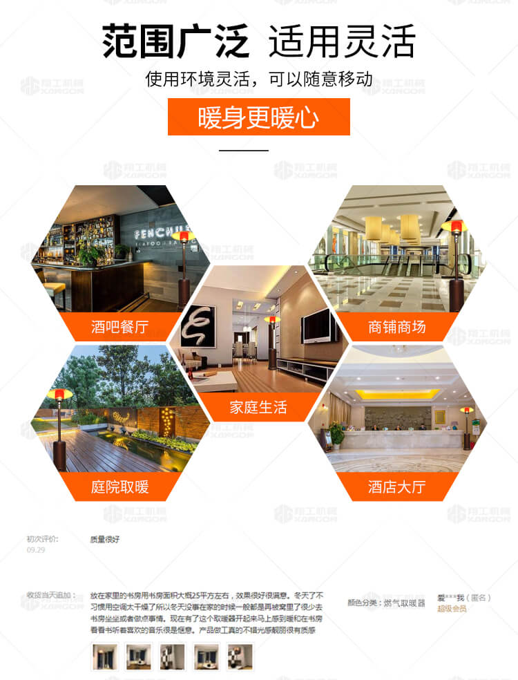 暖風機適用于工廠車間、辦公室、酒店、酒吧、飯店、餐廳、大廳、展廳、咖啡店.天井、步行街、站亭、運動館、步行街、大型會議室及戶外休閑等空氣流通好的場所