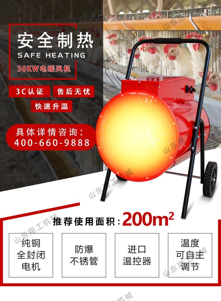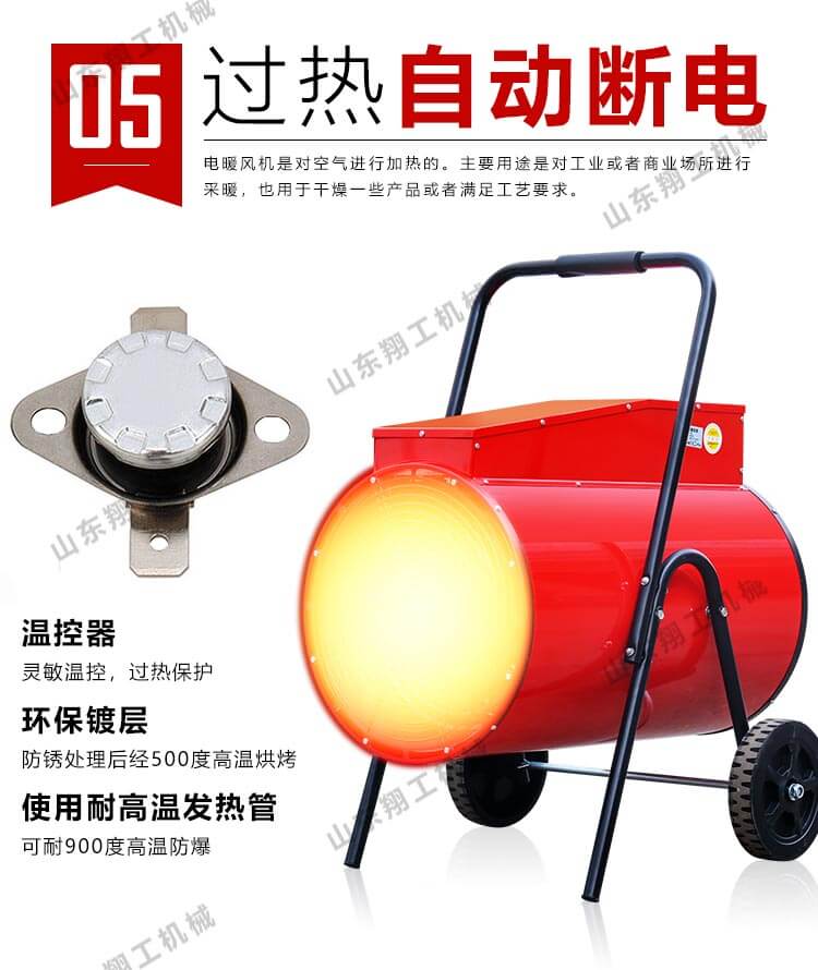 電暖風機是由通風機,電動機及散熱器組合而成的聯合機組。適用于空氣允許再循環的各種類型車間,當空氣中不含灰塵,易燃性的氣體時,可作為循環空氣采暖之用。