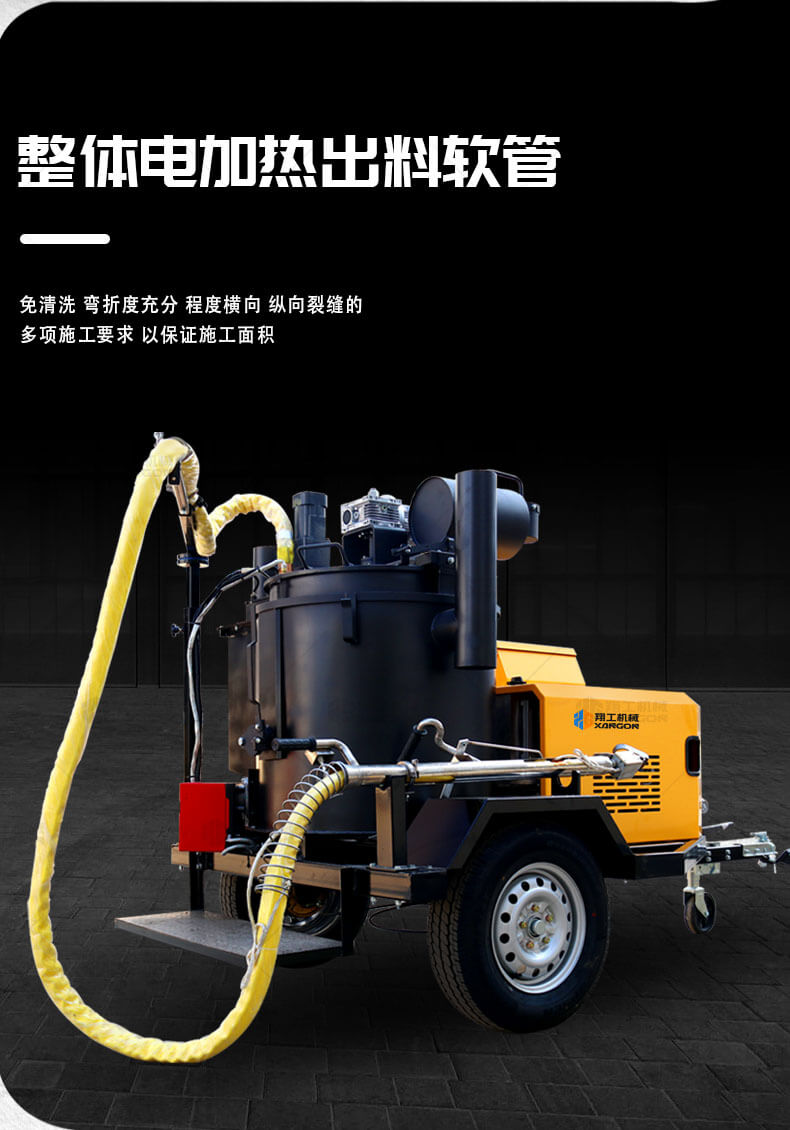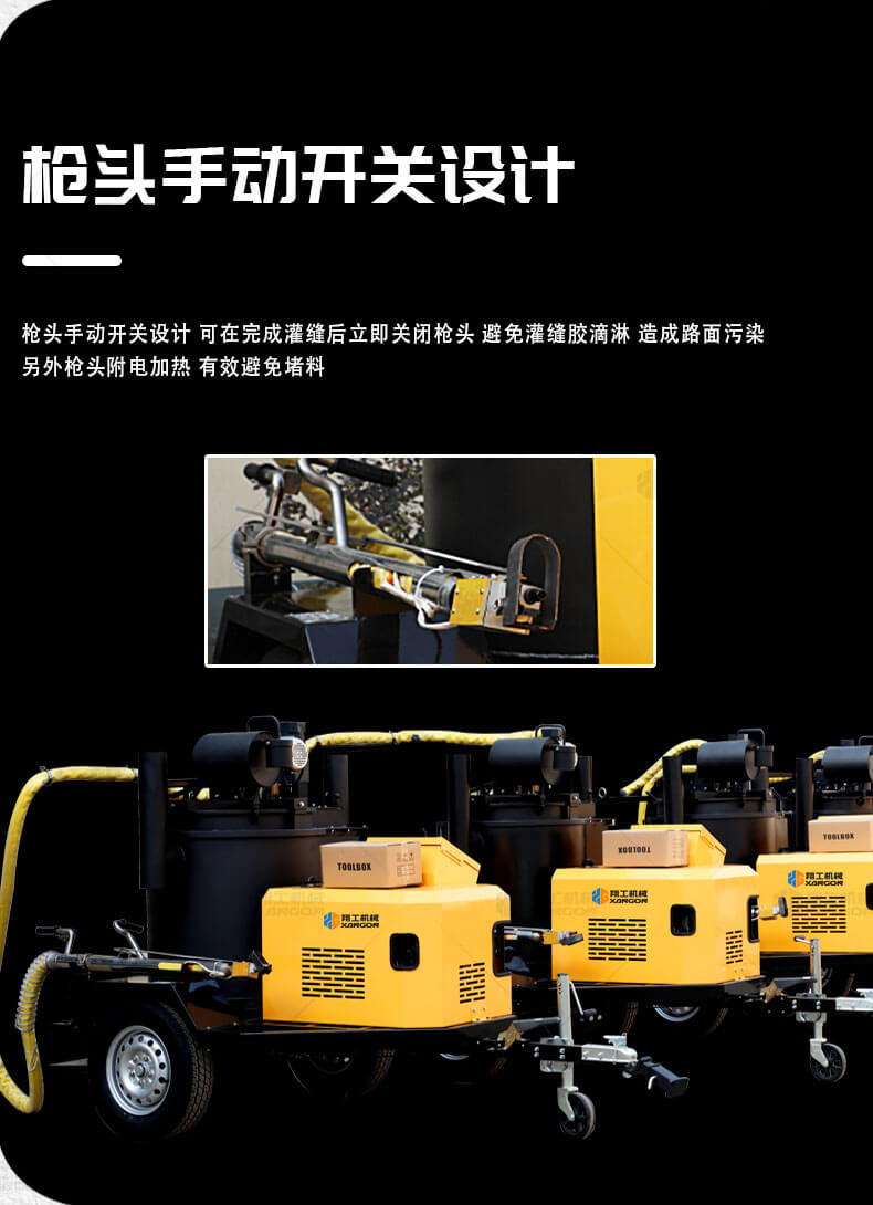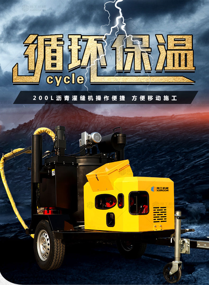 XGF-200瀝青灌縫機使用原料為瀝青灌縫膠,主要用于瀝青路面不規則裂縫、混凝土路面、橋梁伸縮縫、上下水道、煤氣管埋設機鋪裝路面的連結處防水處理,是翔工機械專門設計、生產的瀝青補灌縫機械。